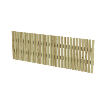 Het hek bestaat uit 30 verticale grenen latten die geschaafd zijn voor een verzorgde afwerking en een nette uitstraling. Dankzij de groene vacuümdrukimpregnatie is het hout beschermd tegen weersinvloeden, waardoor het hek een langere levensduur heeft.