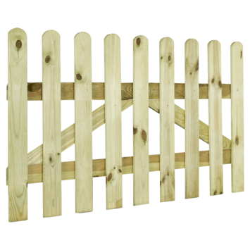 Verhoog de charme en functionaliteit van je sierhek met de tuinpoort grenen. Deze poort is vervaardigd uit geschaafd en geïmpregneerd vurenhout, wat zorgt voor een elegante toegang tot je tuin. Met afmetingen van 60 cm in breedte en 100 cm in hoogte, en een openingsbreedte van 100 cm, past deze poort naadloos bij je andere tuinstructuren. Het impregneren beschermt het hout tegen vocht en schimmels, waardoor je poort langer meegaat. Eenvoudig te installeren en een perfecte afwerking voor een verzorgd tuinhekje.
