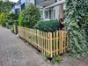 De tuinhekpoort grenen is een praktische keuze voor je tuinhek. Met een hoogte van 80 cm en een breedte van 100 cm is deze poort ideaal voor kleinere doorgangen. De poort is vervaardigd uit 9 geschaafde grenen plankjes, die stevig zijn bevestigd met spijkers. Het geïmpregneerde en geschaafde grenenhout heeft een verwachte levensduur van ongeveer 10 tot 15 jaar, dankzij de behandeling die het hout beschermt tegen weersinvloeden en schimmels. Deze poort sluit perfect aan bij het hek recht en voegt een stijlvolle en robuuste uitstraling toe aan je tuin.