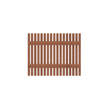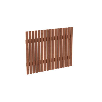 De poort is gemaakt van bruin geïmpregneerd grenenhout en geschaafd voor een strakke en gelijkmatige afwerking. De verticale latten geven de poort een eigentijdse look die uitstekend past bij moderne tuinontwerpen en aansluit bij andere hekwerken.