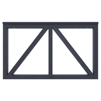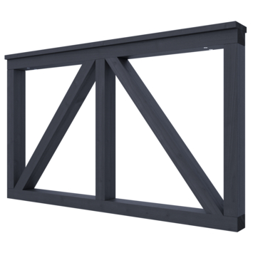 De tuinpoort recht Donau grenen groen geïmpregneerd en gespoten zwart is 60 cm hoog, 100 cm breed en 8,8 cm diep. De poort bestaat uit 2 horizontale latten, 2 schoren en 3 verticale planken. De poort is aan elkaar geschroefd met RVS schroeven.