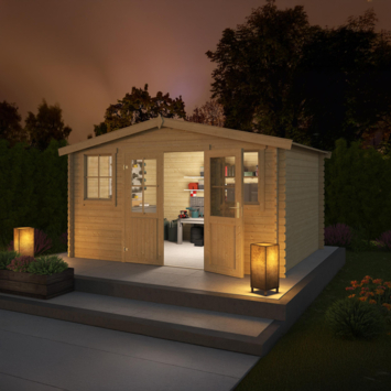 Tuinhuis Dalton vurenhout onbehandeld 276 x 292 cm is een traditioneel tuinhuis van Outdoor Life Products dat je gebruikt als berging voor tuingereedschap of waardevolle spullen. Dit tuinhuis is gemaakt van geschaafd vurenhout en wordt onbehandeld geleverd. De blokhut is opgebouwd met de stapelbouwmethode, waarbij massieve wandbalken van 2,8 cm dik eenvoudig op elkaar worden gestapeld. Achter de afsluitbare dubbele deur met lage dorpel heb je een royale en goed toegankelijke bergruimte.