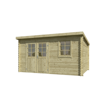 Tuinhuis Danna is een praktische en royale blokhut met een moderne uitstraling. Achter de afsluitbare dubbele deur met lage dorpel is bergruimte voor waardevolle spullen en/of tuingereedschap.
