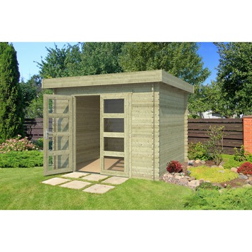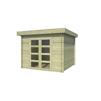 Het tuinhuis Fredrik is een tuinhuis gemaakt van vurenhout. De totale lengte is 315 cm en de breedte is 315 cm aan de buitenzijde. De wanden zijn 28 mm dik en het hoogste punt van deze blokhut is 215 cm. De totale oppervlakte is 7,3 vierkante meter. Dit blokhut is makkelijk op te bouwen door de stapelbouwmethode. Hierdoor is tuinhuis Fredrik ideaal als een schuur, opbergruimte of een extra werkruimte. Het tuinhuis heeft veel lichtinval dankzij de dubbele deuren, voorzien van glas. Het tuinhuis wordt geleverd met een cilinderslot en is hierdoor veilig af te sluiten. ¿Het platte dak helt met een heel lichte hoek met een kleine overstek voor de afwatering en wordt geleverd met een dakbedekking van asfaltvlies zodat het tuinhuis waterdicht is.