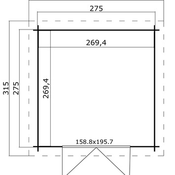- Afm. buitenzijde (lxb): 315x315 cm
