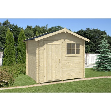 Het tuinhuis Gember is een schuurtje gemaakt van vurenhout. Het tuinhuis heeft een zadeldak (puntdak) bedekt met dakleer. Een zadeldak zorgt ervoor dat regen die op het dak valt er via de zijkanten afloopt. Een dergelijk dak is daardoor vrijwel onderhoudsvrij. Praktisch detail is dat het dak een stukje over de voorkant van het huisje uitsteekt. Daardoor blijft de ingang en het raam beschut van weersomstandigheden. De wanden zijn 1,8 cm dik. Het tuinhuis bevat verder een dichte deur en zesvlaks raam met kunststof ruiten. Het tuinhuis wordt overigens geleverd inclusief hang- en sluitwerk. Het Tuinhuis Gember Onbehandeld Hout Blank 240x180 cm kan daardoor snel in gebruik genomen worden.