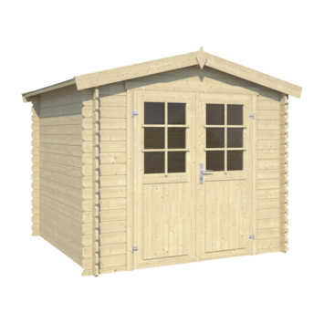 Het tuinhuis is gemaakt van glad geschaafd vurenhout en wordt onbehandeld geleverd. Je kunt het hout dus zelf bewerken met beits of verf. De massieve wandbalken van 28 mm dik worden opgebouwd met een stapelbouwmethode. Dit maakt de montage overzichtelijk en snel. De latten voor de raamverdeling in de deur worden los meegeleverd, zodat je zelf kiest of je deze gebruikt.