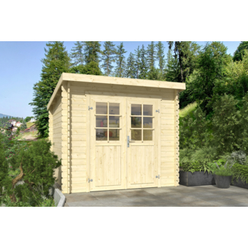 Het tuinhuis Iris is een tuinhuis gemaakt van vurenhout. De totale lengte is 270 cm en de breedte is 250 cm aan de buitenzijde. De wanden zijn 28 mm dik en het hoogste punt van deze blokhut is 211 cm. De totale oppervlakte is 5,0 vierkante meter. Dit blokhut is makkelijk op te bouwen door de stapelbouwmethode. Hierdoor is tuinhuis Mikkel ideaal als een schuur of opbergruimte. Het tuinhuis heeft dubbele deuren, voorzien van glas. Het tuinhuis wordt geleverd met een cilinderslot en is hierdoor veilig af te sluiten.