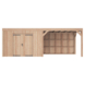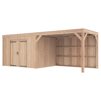 Dit modern vormgegeven tuinverblijf biedt een perfecte balans tussen uitstraling en functionaliteit. De totale afmetingen zijn 245 cm hoog, 695 cm breed en 255 cm diep. De berging heeft een breedte van 328,5 cm met een deur van 75cm x192,5cm.De overkapping heeft een breedte van 328,5 cm en een doorloophoogte van 224 cm.Of je nu een gezellige loungehoek, een opslagruimte of een overdekte plek voor tuinfeestjes zoekt, dit Douglas tuinverblijf is een aanwinst voor iedere tuin.Natuurlijke uitstraling, degelijke kwaliteit.De wanden zijn bekleed met Half houts rabat en de constructie is gemaakt van onbehandeld Douglas met stevige staanders van 12x12cm.De keuze voor onbehandeld Douglas hout biedt een authentieke uitstraling en staat ook garant voor een lange levensduur.Functies:Door een overkapping mét opslag te kiezen, heb je een praktische ruimte om bijvoorbeeld tuingereedschap of fietsen op te slaan en af te sluiten, maar ook voor een ruimte om heerlijk beschut te ontspannen in uw eigen tuin. Het beste van 2 werelden!Klaar voor een groene toekomst:Dit modern vormgegeven tuinverblijf is speciaal ontworpen om zonnepanelen of een sedum dak te kunnen ondersteunen, Hierdoor is dit verblijf een duurzame en milieuvriendelijke aanvulling op uw tuin is.Zelf aan de slagDankzij de duidelijke opbouwomschrijving, meegeleverde bevestigingsmaterialen en op maat gezaagde onderdelen, is de installatie van dit tuinhuis een haalbare klus voor iedere gemiddelde doe-het-zelver. Dak bekleding:Wij raden aan om deze Douglas overkapping te voorzien van een EPDM Dak bekleding voor een lekvrij dak (Let op: los bij te bestellen).Onderhoud:Bij het kopen van een overkapping is onderhoud een aandachtspunt… Met Douglas hout heb je het goed voor elkaar, Douglas is namelijk van zichzelf al een sterke houtsoort. Het gaat zonder extra behandeling eenvoudig 10 tot 15 jaar mee. Om de maximale levensduur te verlengen kun je gebruik maken van speciale Douglas beits of Douglas olie en elke 2 jaar opnieuw beitsen of oliën.