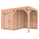 Dit modern vormgegeven tuinverblijf biedt een perfecte balans tussen uitstraling en functionaliteit. De totale afmetingen zijn 245 cm hoog, 395 cm breed en 255 cm diep. De berging heeft een breedte van 178,5 cm met een deur van 75cm x192,5cm.De overkapping heeft een breedte van 178,5 cm en een doorloophoogte van 224 cm.Of je nu een gezellige loungehoek, een opslagruimte of een overdekte plek voor tuinfeestjes zoekt, dit Douglas tuinverblijf is een aanwinst voor iedere tuin.Natuurlijke uitstraling, degelijke kwaliteit.De wanden zijn bekleed met Douglas Zweeds rabat en de constructie is gemaakt van onbehandeld Douglas met stevige staanders van 12x12cm.De keuze voor onbehandeld Douglas hout biedt een authentieke uitstraling en staat ook garant voor een lange levensduur.Functies:Door een overkapping mét opslag te kiezen, heb je een praktische ruimte om bijvoorbeeld tuingereedschap of fietsen op te slaan en af te sluiten, maar ook voor een ruimte om heerlijk beschut te ontspannen in uw eigen tuin. Het beste van 2 werelden!Klaar voor een groene toekomst:Dit modern vormgegeven tuinverblijf is speciaal ontworpen om zonnepanelen of een sedum dak te kunnen ondersteunen, Hierdoor is dit verblijf een duurzame en milieuvriendelijke aanvulling op uw tuin is.Zelf aan de slagDankzij de duidelijke opbouwomschrijving, meegeleverde bevestigingsmaterialen en op maat gezaagde onderdelen, is de installatie van dit tuinhuis een haalbare klus voor iedere gemiddelde doe-het-zelver. Dak bekleding:Wij raden aan om deze Douglas overkapping te voorzien van een EPDM Dak bekleding voor een lekvrij dak (Let op: los bij te bestellen).Onderhoud:Bij het kopen van een overkapping is onderhoud een aandachtspunt… Met Douglas hout heb je het goed voor elkaar, Douglas is namelijk van zichzelf al een sterke houtsoort. Het gaat zonder extra behandeling eenvoudig 10 tot 15 jaar mee. Om de maximale levensduur te verlengen kun je gebruik maken van speciale Douglas beits of Douglas olie en elke 2 jaar opnieuw beitsen of oliën.
