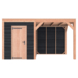 Dit modern vormgegeven tuinverblijf biedt een perfecte balans tussen uitstraling en functionaliteit. De totale afmetingen zijn 245 cm hoog, 445 cm breed en 255 cm diep. De berging heeft een breedte van 228,5 cm met een deur van 75cm x192,5cm.De overkapping heeft een breedte van 178,5 cm en een doorloophoogte van 224 cm.Of je nu een gezellige loungehoek, een opslagruimte of een overdekte plek voor tuinfeestjes zoekt, dit Douglas tuinverblijf is een aanwinst voor iedere tuin.Natuurlijke uitstraling, degelijke kwaliteit.De wanden zijn bekleed met Zwart Zweeds rabat en de constructie is gemaakt van onbehandeld Douglas met stevige staanders van 12x12cm.De keuze voor onbehandeld Douglas hout biedt een authentieke uitstraling en staat ook garant voor een lange levensduur.Functies:Door een overkapping mét opslag te kiezen, heb je een praktische ruimte om bijvoorbeeld tuingereedschap of fietsen op te slaan en af te sluiten, maar ook voor een ruimte om heerlijk beschut te ontspannen in uw eigen tuin. Het beste van 2 werelden!Klaar voor een groene toekomst:Dit modern vormgegeven tuinverblijf is speciaal ontworpen om zonnepanelen of een sedum dak te kunnen ondersteunen, Hierdoor is dit verblijf een duurzame en milieuvriendelijke aanvulling op uw tuin is.Zelf aan de slagDankzij de duidelijke opbouwomschrijving, meegeleverde bevestigingsmaterialen en op maat gezaagde onderdelen, is de installatie van dit tuinhuis een haalbare klus voor iedere gemiddelde doe-het-zelver. Dak bekleding:Wij raden aan om deze Douglas overkapping te voorzien van een EPDM Dak bekleding voor een lekvrij dak (Let op: los bij te bestellen).Onderhoud:Bij het kopen van een overkapping is onderhoud een aandachtspunt… Met Douglas hout heb je het goed voor elkaar, Douglas is namelijk van zichzelf al een sterke houtsoort. Het gaat zonder extra behandeling eenvoudig 10 tot 15 jaar mee. Om de maximale levensduur te verlengen kun je gebruik maken van speciale Douglas beits of Douglas olie en elke 2 jaar opnieuw beitsen of oliën.