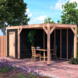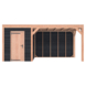 Dit modern vormgegeven tuinverblijf biedt een perfecte balans tussen uitstraling en functionaliteit. De totale afmetingen zijn 245 cm hoog, 545 cm breed en 255 cm diep. De berging heeft een breedte van 328,5 cm met een deur van 75cm x192,5cm.De overkapping heeft een breedte van 178,5 cm en een doorloophoogte van 224 cm.Of je nu een gezellige loungehoek, een opslagruimte of een overdekte plek voor tuinfeestjes zoekt, dit Douglas tuinverblijf is een aanwinst voor iedere tuin.Natuurlijke uitstraling, degelijke kwaliteit.De wanden zijn bekleed met Zwart Zweeds rabat en de constructie is gemaakt van onbehandeld Douglas met stevige staanders van 12x12cm.De keuze voor onbehandeld Douglas hout biedt een authentieke uitstraling en staat ook garant voor een lange levensduur.Functies:Door een overkapping mét opslag te kiezen, heb je een praktische ruimte om bijvoorbeeld tuingereedschap of fietsen op te slaan en af te sluiten, maar ook voor een ruimte om heerlijk beschut te ontspannen in uw eigen tuin. Het beste van 2 werelden!Klaar voor een groene toekomst:Dit modern vormgegeven tuinverblijf is speciaal ontworpen om zonnepanelen of een sedum dak te kunnen ondersteunen, Hierdoor is dit verblijf een duurzame en milieuvriendelijke aanvulling op uw tuin is.Zelf aan de slagDankzij de duidelijke opbouwomschrijving, meegeleverde bevestigingsmaterialen en op maat gezaagde onderdelen, is de installatie van dit tuinhuis een haalbare klus voor iedere gemiddelde doe-het-zelver. Dak bekleding:Wij raden aan om deze Douglas overkapping te voorzien van een EPDM Dak bekleding voor een lekvrij dak (Let op: los bij te bestellen).Onderhoud:Bij het kopen van een overkapping is onderhoud een aandachtspunt… Met Douglas hout heb je het goed voor elkaar, Douglas is namelijk van zichzelf al een sterke houtsoort. Het gaat zonder extra behandeling eenvoudig 10 tot 15 jaar mee. Om de maximale levensduur te verlengen kun je gebruik maken van speciale Douglas beits of Douglas olie en elke 2 jaar opnieuw beitsen of oliën.
