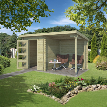 Tuinhuis met overkapping Edelweiss vurenhout geïmpregneerd 390 x 215 cm