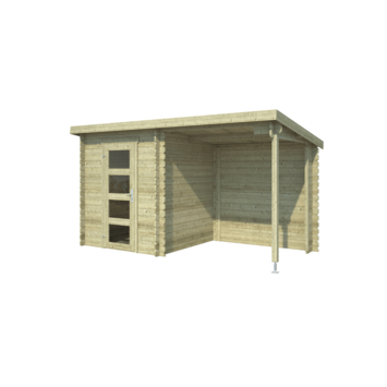 Tuinhuis met overkapping Edelweiss vurenhout geïmpregneerd 390 x 215 cm is een tuinhuis met overkapping dat je gebruikt als schuur of opbergruimte. Het afgesloten gedeelte is handig voor spullen zoals tuingereedschap of andere items die je liever uit het zicht zet. Het hout is vurenhout en is geschaafd en geïmpregneerd.