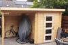 Het tuinhuis moet verder afgewerkt worden met EPDM dakfolie of shingles om waterdichtheid te garanderen.