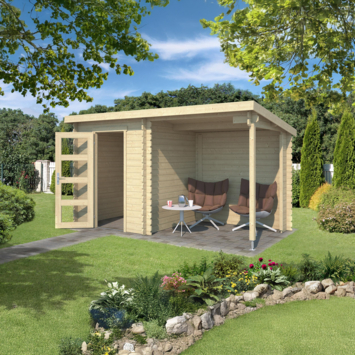 Tuinhuis met overkapping Edelweiss vurenhout onbehandeld 390 x 215 cm