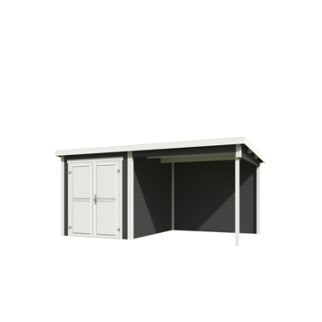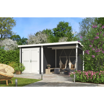 Het tuinhuis Finn 450x250 heeft een fundamentmaat van 450cm(b) x 250cm(d). De massieve 28mm dikke vurenhouten wanddelen zijn uitgevoerd met mes en groef. De stapelbouw methode in combinatie met hoekpalen en schroefsysteem zorgt voor een zeer sterke constructie. Dit moderne en strak vorm gegeven tuinhuis met haar dubbele dichte deur is bijzonder geschikt als berging voor uw tuinspullen met daarbij een overkapping om ook heerlijk beschut te kunnen chillen. Het basispakket wordt geleverd inclusief een duidelijk montagehandleiding, onderdelenlijst en uiteraard alle benodigde bevestigingsmaterialen, zoals het deurbeslag. Voor langdurig plezier van uw tuinhuis, wordt aangeraden een EDPM dakbedekkingpakket aan te kopen om waterdichtheid te verzekeren. Het stapelbare blokhut systeem is door de handige doe-het-zelver prima zelf te monteren en dit tuinhuis wordt als bouwpakket bij u thuis geleverd.