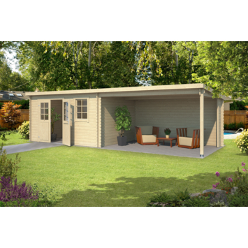 Tuinhuis Joy is een moderne en ruime blokhut met een prachtige overkapping. Onder de overkapping is het heerlijk vertoeven. Het afgesloten gedeelte van deze blokhut is geschikt als bergruimte voor bijvoorbeeld waardevolle spullen en/of tuingereedschap.