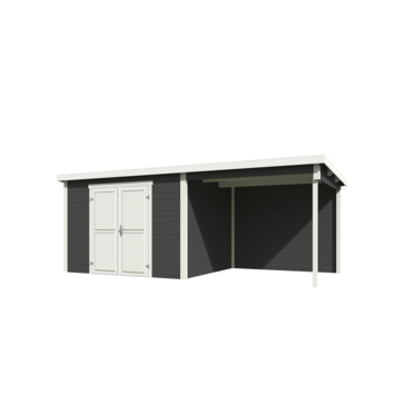 Het tuinhuis Kjeld 550x250 heeft een fundamentmaat van 550cm(b) x 250cm(d). De massieve 28mm dikke vurenhouten wanddelen zijn uitgevoerd met mes en groef. De stapelbouw methode in combinatie met hoekpalen en schroefsysteem zorgt voor een zeer sterke constructie. Dit moderne en strak vormgegeven tuinhuis met haar dubbele dichte deur is bijzonder geschikt als berging voor uw tuinspullen met daarbij een overkapping om ook heerlijk beschut te kunnen chillen. Het basispakket wordt geleverd inclusief een duidelijk montagehandleiding, onderdelenlijst en uiteraard alle benodigde bevestigingsmaterialen, zoals het deurbeslag. Voor langdurig plezier van uw tuinhuis, wordt aangeraden een EDPM dakbedekkingpakket aan te kopen om waterdichtheid te verzekeren. Het stapelbare blokhut systeem is door de handige doe-het-zelver prima zelf te monteren en dit tuinhuis wordt als bouwpakket bij u thuis geleverd.