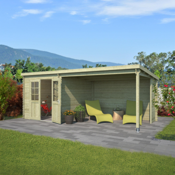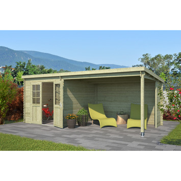 Tuinhuis met overkapping Sunniva vurenhout geïmpregneerd 590 x 304 cm