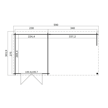 - Afm. buitenzijde (lxb): 590x304 cm