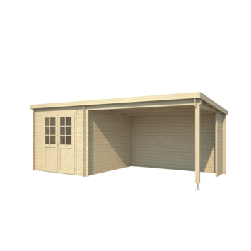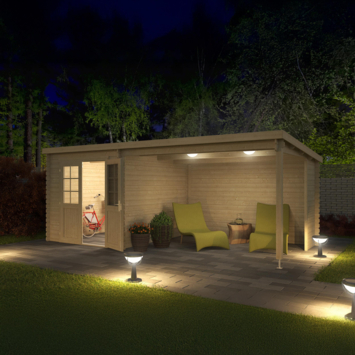 Het tuinhuis Sunniva is een tuinhuis met overkapping gemaakt van vurenhout. De totale lengte is 590 cm en de breedte is 304 cm aan de buitenzijde. De wanden zijn 28 mm dik en het hoogste punt van deze blokhut is 227 cm. De totale oppervlakte is 15,2 vierkante meter. Dit blokhut is makkelijk op te bouwen door de stapelbouwmethode. Hierdoor is tuinhuis Sunniva ideaal als een extra werkruimte of tweede huiskamer. Het tuinhuis heeft dubbele deuren, voorzien van glas. Het tuinhuis wordt geleverd met een cilinderslot en is hierdoor veilig af te sluiten.