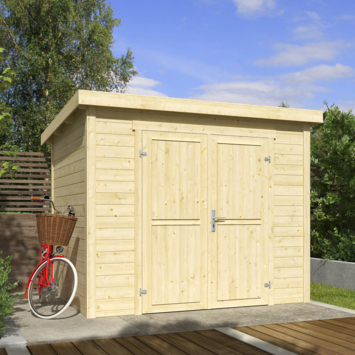 Het tuinhuis Mila 250x200 heeft een fundamentmaat van 250cm(b) x 200cm(d). De massieve 28mm dikke vurenhouten wanddelen zijn uitgevoerd met mes en groef. De stapelbouw methode in combinatie met hoekpalen en schroefsysteem zorgt voor een zeer sterke constructie. Dit moderne en strak vorm gegeven tuinhuis met haar dubbele dichte deur is bijzonder geschikt als berging voor uw tuinspullen. Het basispakket wordt geleverd inclusief een duidelijk montagehandleiding, onderdelenlijst en uiteraard alle benodigde bevestigingsmaterialen, zoals het deurbeslag. Dit tuinhuis wordt zonder dakbedekking geleverd, hiervoor is optioneel een EPDM dakbedekking pakket bestelbaar. Het stapelbouw blokhut systeem is door de handige doe-het-zelver prima zelf te monteren en dit tuinhuis wordt als bouwpakket bij u thuis geleverd.
