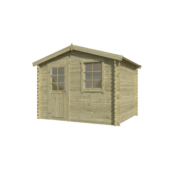 Tuinhuis Roos is gemaakt van vurenhout met wanden van 2,8 cm dik. De stapelbouwmethode maakt het eenvoudig om het tuinhuis in elkaar te zetten. Hierbij verbind je de planken met tand- en groefprofielen en uitsparingen, zodat je ze laag voor laag stapelt zonder dat er steunpilaren nodig zijn.
