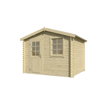 Het tuinhuis Roos is een tuinhuis met overkapping gemaakt van vurenhout. De totale lengte is 307 cm en de breedte is 250 cm aan de buitenzijde. De wanden zijn 28 mm dik en het hoogste punt van deze blokhut is 234 cm. De totale oppervlakte is 6,1 vierkante meter. Dit blokhut is makkelijk op te bouwen door de stapelbouwmethode. Hierdoor is tuinhuis Roos ideaal als een schuurtje, opbergruimte of extra werkruimte. Het tuinhuis heeft een deur voorzien van glas. Het tuinhuis wordt geleverd met een cilinderslot en is hierdoor veilig af te sluiten.