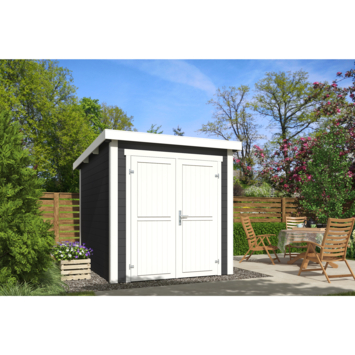 Het tuinhuis Sara 200x250 heeft een fundamentmaat van 200cm(b) x 205cm(d). De massieve 28mm dikke vurenhouten wanddelen zijn uitgevoerd met mes en groef. De stapelbouw methode in combinatie met hoekpalen en schroefsysteem zorgt voor een zeer sterke constructie. Dit moderne en strak vorm gegeven tuinhuis met haar dubbele dichte deur is bijzonder geschikt als berging voor uw tuinspullen. Het basispakket wordt geleverd inclusief een duidelijk montagehandleiding, onderdelenlijst en uiteraard alle benodigde bevestigingsmaterialen, zoals het deurbeslag. Voor langdurig plezier van uw tuinhuis, wordt aangeraden een EDPM dakbedekkingpakket aan te kopen om waterdichtheid te verzekeren. Het stapelbare blokhut systeem is door de handige doe-het-zelver prima zelf te monteren en dit tuinhuis wordt als bouwpakket bij u thuis geleverd.