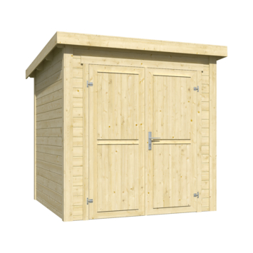 Wil je een compacte en stevige berging voor je tuinspullen? Dan zit je met tuinhuis Sara goed. Het model is 200 cm breed en 200 cm diep – groot genoeg voor je grasmaaier, tuinkussens of klein tuinmeubilair, maar past toch in vrijwel elke tuin. De wanddelen zijn gemaakt van 28 mm dik vurenhout en schuiven netjes in elkaar dankzij het mes-en-groef systeem. Samen met de hoekpalen en het stevige schroefsysteem vormt dit een solide geheel dat goed bestand is tegen dagelijks gebruik. Sara wordt geleverd als compleet bouwpakket, inclusief alle bevestigingsmaterialen en een duidelijke handleiding. Dankzij het stapelbare blokhutsysteem is het ook voor de doe-het-zelver goed te doen. De dubbele dichte deur maakt het makkelijk om grotere spullen naar binnen en buiten te brengen. Dakbedekking is optioneel en los te bestellen als EPDM-pakket. Of je nu je tuin netjes wilt houden of gewoon een droge plek zoekt voor je spullen, met dit tuinhuis heb je alles bij de hand.
