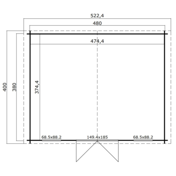 - Afm. buitenzijde (lxb) 480x380 cm