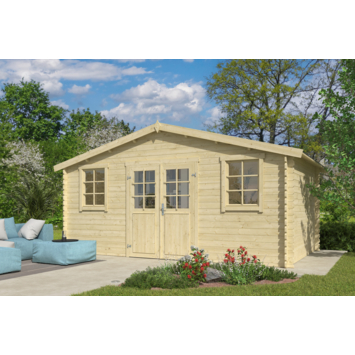 Tuinhuis Stinna is een praktische en een zeer royale blokhut met een traditionele look. Achter de afsluitbare dubbele deur met lage dorpel is bergruimte voor waardevolle spullen en/of tuingereedschap.