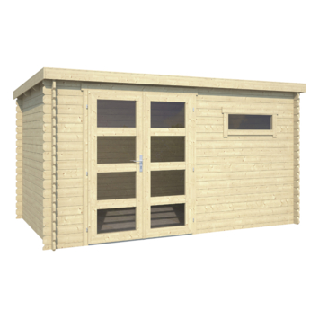 Met tuinhuis Timian haal je een praktisch en stijlvol tuinhuis in je tuin. Deze blokhut is gemaakt van geschaafd Noord-Europees vurenhout met een wanddikte van 28 mm. Het hout is onbehandeld, zodat je het zelf kunt afwerken met beits, olie of verf. Zo bepaal je zelf de uitstraling en geef je het hout extra bescherming. Dankzij de stapelbouwmethode zet je het tuinhuis eenvoudig in elkaar. De planken hebben een tand-en-groefprofiel en worden laag voor laag opgestapeld tot een stevige constructie, zonder steunpilaren.