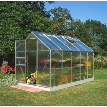 De Popular 106, blank. Deze kas doet zijn naam eer aan: wereldwijd wordt van hobbyist tot gevorderde kweker met plezier gebruik gemaakt van dit model! Deze tuinkas biedt veel waar voor zijn geld. De Popular kas is leverbaar in 4 verschillende lengtes, 2 verschillende kleuren en 3 verschillende afdichtingen! U kunt de kas dus samenstellen naar eigen wens. Het glas of polycarbonaat wordt met behulp van glasklemmen vastgezet, en tuindersglas met behulp van glashaken ‘dakpansgewijs gestapeld’. Hierbij overlappen de ruiten ongeveer 1 cm. Een goede beluchting van de kas is van levensbelang voor alle gewassen. De Popular kas is voorzien van maximaal 2 dakramen in de grootste modellen. De Popular is leverbaar in een blank aluminium of donkergroen gecoate uitvoering. Een bijpassende stalen fundering is apart verkrijgbaar en vormt de basis voor jarenlang kweekplezier. Het gebruik van een stabiele fundering is noodzakelijk voor het optimaal laten functioneren van de kas en biedt de juiste basis voor jarenlang kweekplezier!