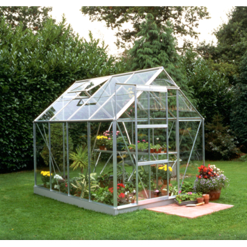 De Popular 86, blank. Deze kas doet zijn naam eer aan: wereldwijd wordt van hobbyist tot gevorderde kweker met plezier gebruik gemaakt van dit model! Deze tuinkas biedt veel waar voor zijn geld. De Popular kas is leverbaar in 4 verschillende lengtes, 2 verschillende kleuren en 3 verschillende afdichtingen! U kunt de kas dus samenstellen naar eigen wens. Het glas of polycarbonaat wordt met behulp van glasklemmen vastgezet, en tuindersglas met behulp van glashaken ‘dakpansgewijs gestapeld’. Hierbij overlappen de ruiten ongeveer 1 cm. Een goede beluchting van de kas is van levensbelang voor alle gewassen. De Popular kas is voorzien van maximaal 2 dakramen in de grootste modellen. De Popular is leverbaar in een blank aluminium of donkergroen gecoate uitvoering. Een bijpassende stalen fundering is apart verkrijgbaar en vormt de basis voor jarenlang kweekplezier. Het gebruik van een stabiele fundering is noodzakelijk voor het optimaal laten functioneren van de kas en biedt de juiste basis voor jarenlang kweekplezier!