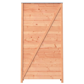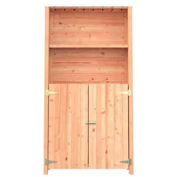 Deze tuinkast heeft deuren aan de onderkant waardoor het ideaal is om tuingereedschap op te bergen. Deze tuinkast is gemaakt van onbehandeld Douglas hout. Douglas is van nature een sterke houtsoort en gaat zonder extra behandeling 10 tot 15 jaar mee. Om de Douglas kleur te behouden en vergrijzing te voorkomen kan gebruik gemaakt worden van buitenbeits. Dit brengt ook als voordeel mee dat de maximale levensduur verlengt kan worden.