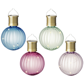 Deze leuke gekleurde lamp met micro LED is een sfeermaker voor zowel binnen als buiten. De lamp is gemaakt van kunststof en verkrijgbaar in 4 verschillende kleuren. Maak een leuke mix van de kleuren en hang ze in de boom of aan de schutting en je hebt meteen een gezellige sfeer! De lampjes hebben een geintegreerd solar systeem die 6 uur licht opbrengst kan verzorgen.