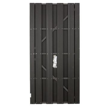 De tuindeur is samengesteld uit natuurlijke vezels en polymeren. Daardoor is deze poort onderhoudsarm. De poort heeft, net zoals de schutting, een levensduur van ongeveer 15 jaar biedt veel privacy. De poort heeft een standaard breedte van ca. 90 cm en een hoogte van ca. 180 cm. Deze tuindeur kan zowel links- als rechtsdraaiend worden geplaatst. Bevestigingsmateriaal wordt meegeleverd: 2x verstelbare heng en 2x plaatduim