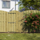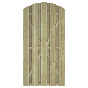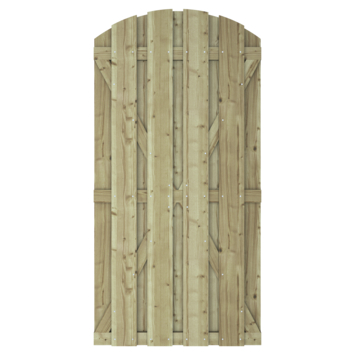 Deze tuinpoort is gemaakt van geïmpregneerd grenenhout. Dit is een van de meest gebruikte houtsoorten in de tuin. Doordat het hout is geïmpregneerd, wordt de levensduur ervan verlengd. Hierdoor is het ook niet nodig om het hout direct te behandelen met een tuinbeits. Pas na circa 5 jaar dient het hout behandeld te worden met een beits of olie voor kleurbehoud en behoud van de levensduur.