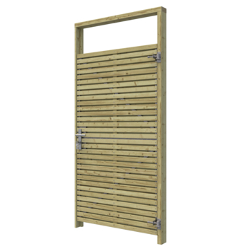 De tuindeur en het kozijn zijn gemaakt van grenenhout, dat vacuümdruk geïmpregneerd is met Tanalith E om de levensduur te verlengen tot 10-15 jaar en bescherming te bieden tegen oppervlakte-schimmels. Combineer deze tuindeur met de bijpassende lattenschermen Andalusië grenen groen geïmpregneerd voor een fraai geheel. Dankzij het U-profiel aan de boven- en onderkant kan het scherm zowel horizontaal als verticaal worden gemonteerd.