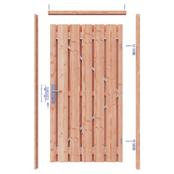 Het tuindeurkozijn is ook van Douglas en heeft een aanslaglat. Dit universele kozijn kan worden gebruikt voor poorten met een maximale breedte van 160 cm. Voor dit tuindeurpakket is een poortbreedte van 110 cm tussen de staanders ideaal. Het kozijn wordt als bouwpakket geleverd, compleet met bevestigingsmaterialen en een duidelijke montagehandleiding, zodat je het eenvoudig zelf kunt monteren.