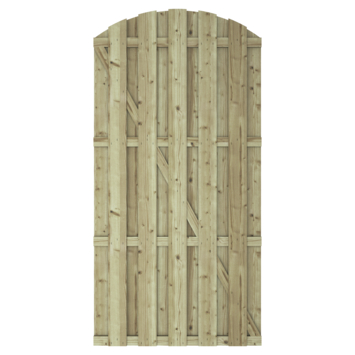 Deze poort kan het beste worden gecombineerd met een schutting van grenen hout, zoals schutting Wales. De poort heeft een standaard breedte van ongeveer 90 cm en de hoogte is 180 cm. Deze tuindeur kan zowel links- als rechtsdraaiend worden geplaatst. Bevestigingsmateriaal dient los te worden aangeschaft.