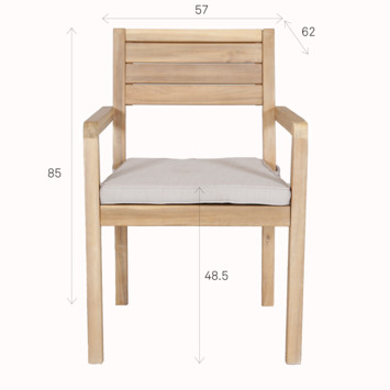 Genieten doe je in stijl. Gezellig tafelen met deze acacia hardhoutenstoel. Stoel Boris wordt geleverd inclusief kussen.