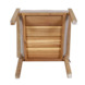 Acacia hardhout. De kussens zijn gemaakt van stof met kleur taupe.