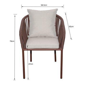 De KARWEI tuinstoel Bowie in bruin combineert stijl en comfort, waardoor hij een ideale keuze is voor elke tuin of terras. Met een zithoogte van 45 cm biedt deze stoel een ontspannen zitervaring, perfect voor lange zomeravonden buiten. De zitting is gemaakt van bruin textileen op een stevig metalen frame, wat zorgt voor een stabiele en comfortabele basis. De meegeleverde groene zit- en rugkussens voegen niet alleen extra comfort toe, maar creëren ook een stijlvol contrast dat moeiteloos in verschillende tuinstijlen past. De KARWEI tuinstoel Bowie wordt volledig gemonteerd geleverd, zodat je direct kunt genieten van het design en het zitcomfort. De stevige metalen constructie is bestand tegen diverse weersomstandigheden, waardoor deze stoel een betrouwbare en stijlvolle keuze is voor je buitenruimte. Of je nu een gezellige loungehoek wilt creëren of een comfortabele stoel zoekt voor ontspanning, de KARWEI tuinstoel Bowie biedt de perfecte balans tussen design en functionaliteit.