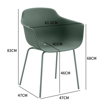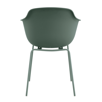 De Charlie tuinstoel in groen kunststof biedt een comfortabele zitplek voor buiten. Met armleuningen en een stevige zitting geniet je ontspannen van maaltijden of momenten in de zon.