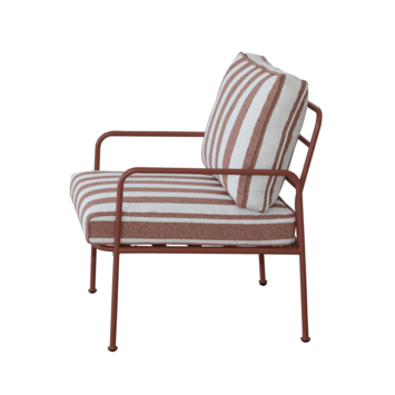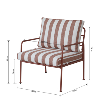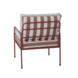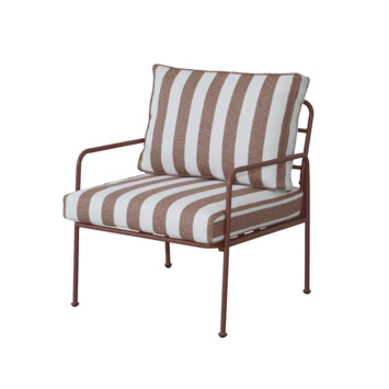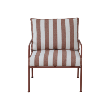 De Fauteuil Chloé in terracotta met rood/wit gestreepte kussens biedt een stevige en comfortabele zitplek in je tuin of op je balkon.