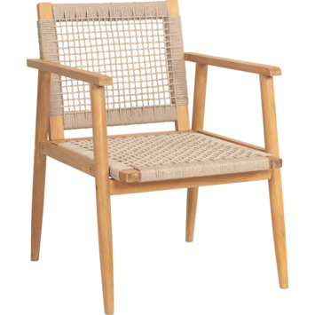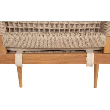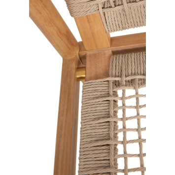 - Zitting in beige geweven polyurethaan en light teak-gebeitst acaciahouten onderstel