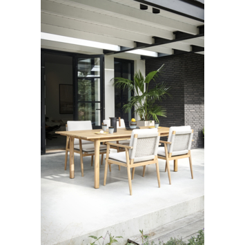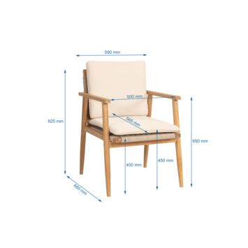 Deze tuinstoel Fenna brengt een elegante en natuurlijke look in je tuin. Met z’n lichte teak kleur, comfortabele afmetingen (40 cm zithoogte, 59 cm breed en 68 cm diep) en bijpassende kussens zit je altijd goed. De beige geweven zitting ziet er luxe uit, is weerbestendig en vraagt weinig onderhoud. Het stevige acaciahouten onderstel met teakbeits geeft de stoel een stoere en warme uitstraling, perfect voor elke buitenruimte. De stoel wordt geleverd met een comfortabel zit- en rugkussen in bijpassend beige, zodat je meteen kunt relaxen. Je krijgt de stoel als bouwpakket, maar de montage is eenvoudig dankzij de duidelijke handleiding. Zo kun je snel genieten van je nieuwe tuinstoel.
